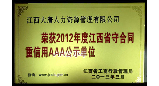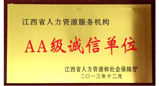 江西省人力資源服務(wù)機(jī)構(gòu)AA級(jí)誠(chéng)信單位