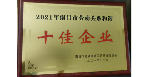 南昌市勞動(dòng)關(guān)系和諧十佳企業(yè)